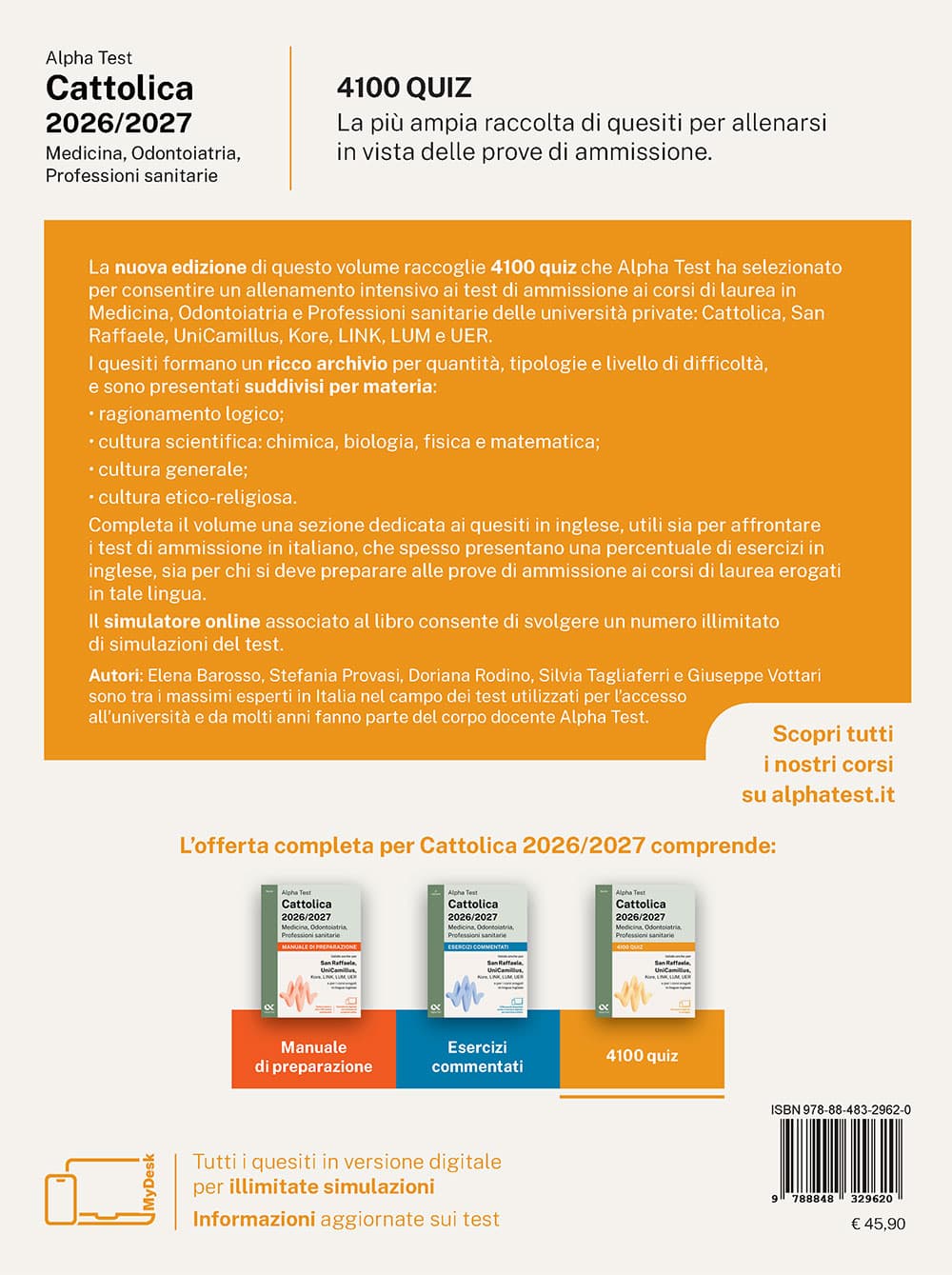Con il libro hai a disposizione il supporto extra di MyDesk, la piattaforma online di Alpha Test che ti aiuta a personalizzare il tuo studio. Su MyDesk intensifichi il tuo allenamento per portare la preparazione al massimo livello. Puoi svolgere: