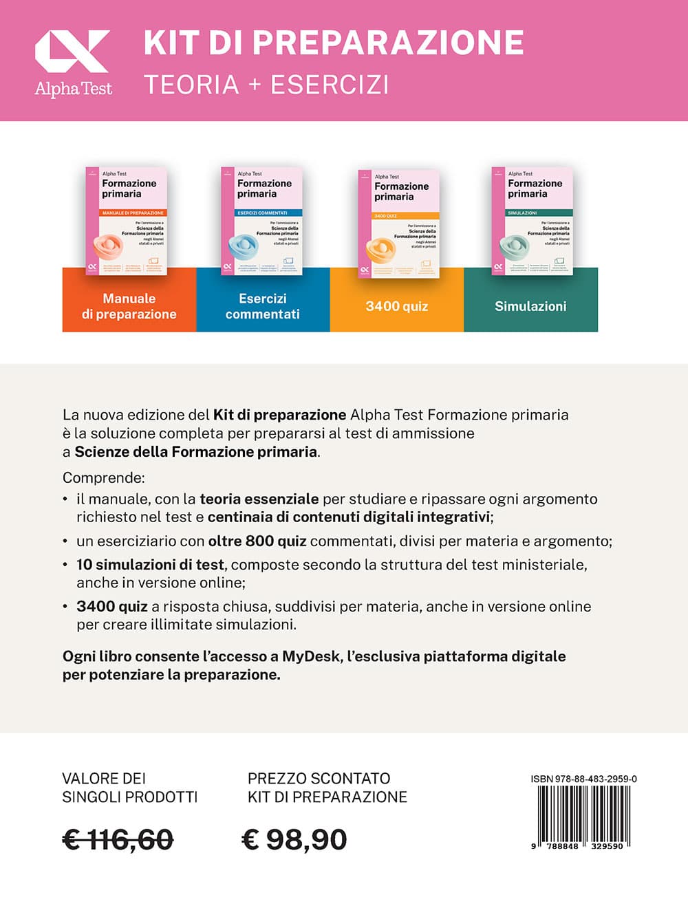Comprende quattro volumi accompagnati da contenuti digitali esclusivi facilmente accessibili su MyDesk, la piattaforma digitale di Alpha Test per esercitarti ovunque ti trovi.